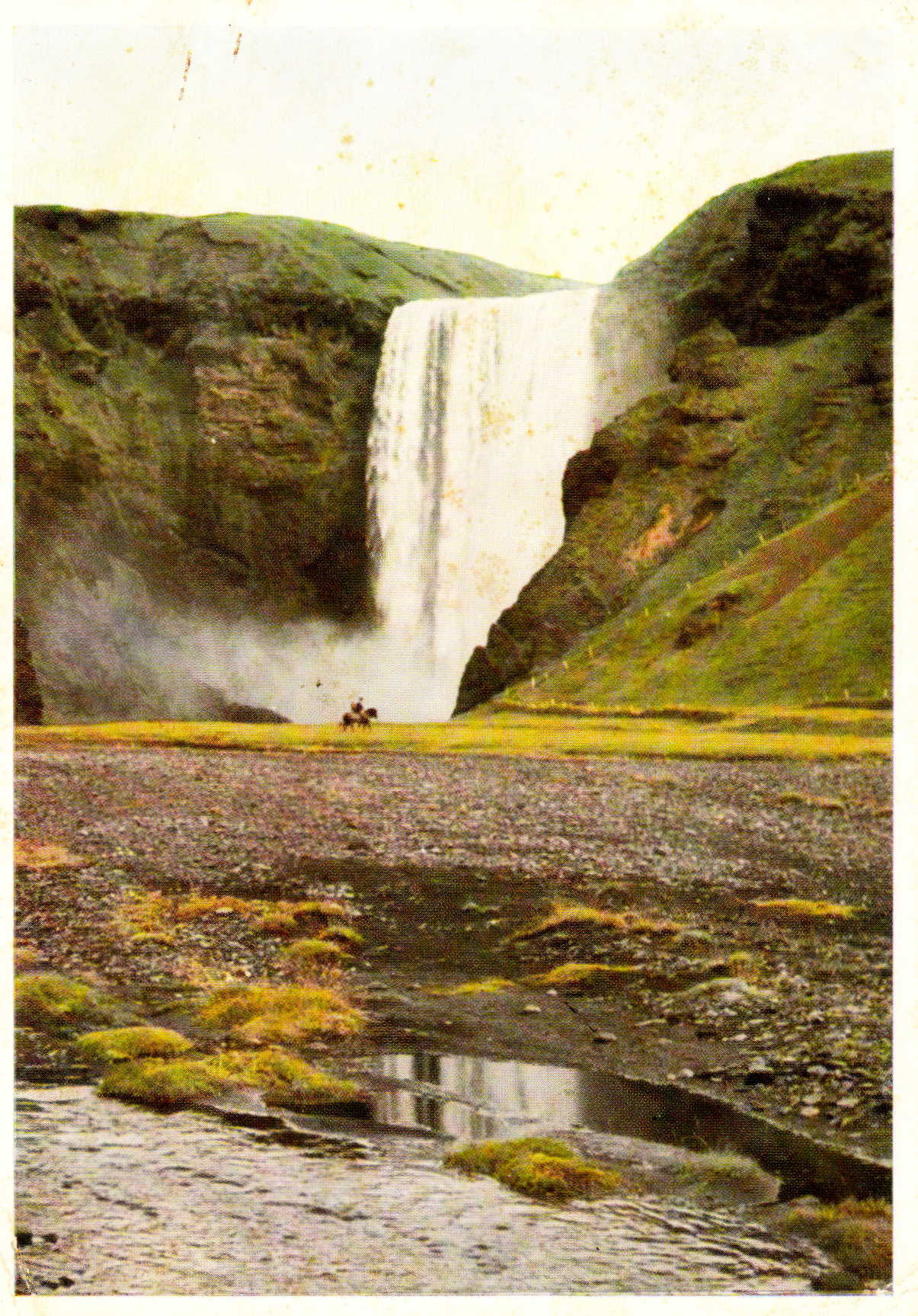 Postcard of Skógarfoss, a waterfall on the Skógá River in Iceland, sent to Colleen by her friend Karin (Summer 1969)“Skógarfoss: One of the highest and most beautiful waterfalls in Iceland…”