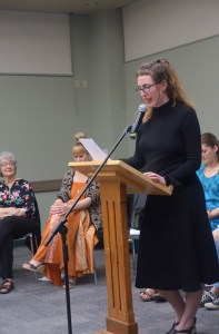 Voicing Colleen at the London Public LIbrary: James Stewart Reaney and Susan Reaney (Colleen’s children) read Thibaudeau’s poem “Looking at The Artemesia Book”. (All photos from this event are by Cameron Paton.)