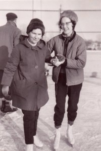 Colleen (on the right) with a friend at the Broughdale skating rink, London, Ontario, January 1966.